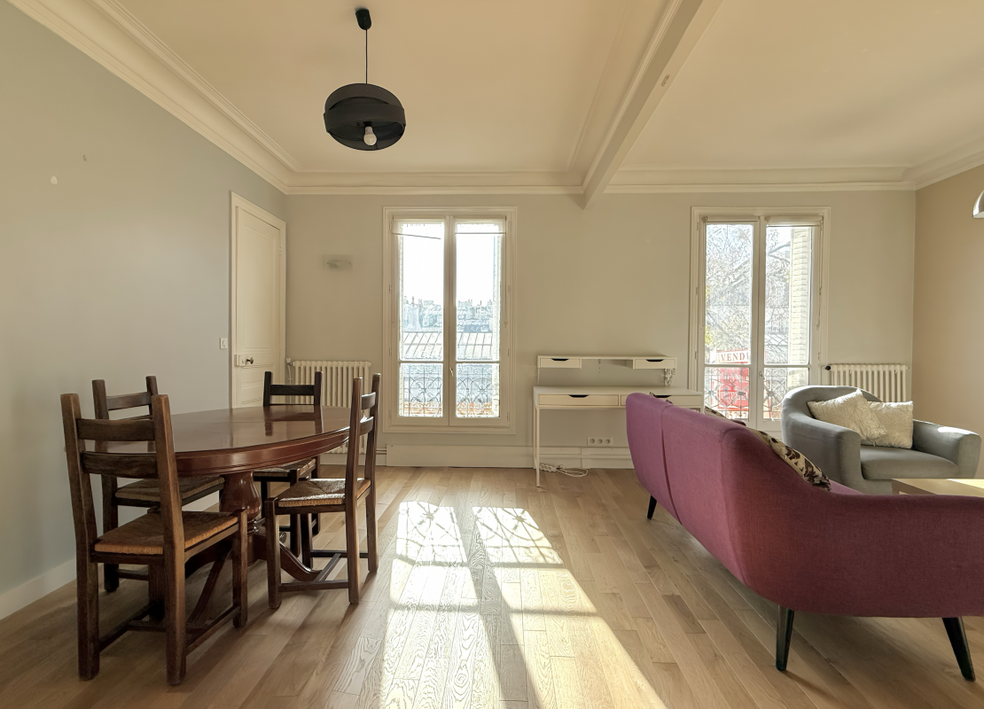 Situé au 4ᵉ étage d’un bel immeuble en pierre de taille, cet appartement traversant se compose d’une entrée, d’un double séjour exposé sud, sans vis-à-vis, d’une cuisine séparée, de deux chambres, dont une côté cour offrant une vue sur la Tour Eiffel, d’une salle d’eau, d’une buanderie ainsi que de WC indépendants.