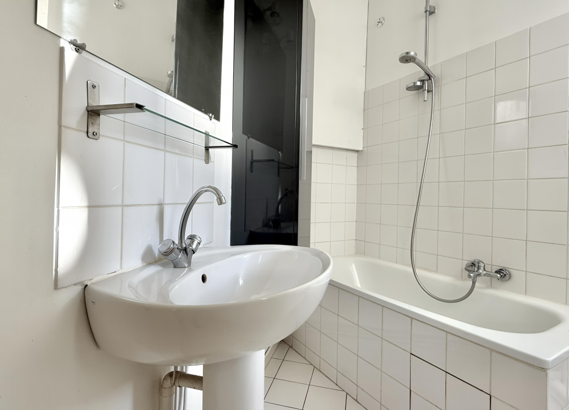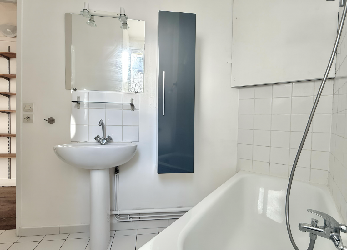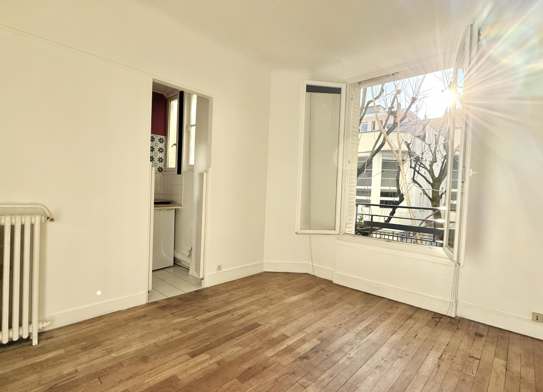 Au 1er étage avec ascenseur d'un immeuble ancien, le studio se compose d'une entrée avec rangements, d'une pièce principale lumineuse, orientée plein sud et donnant sur une cour arborée et dégagée, d'une cuisine séparée avec une fenêtre, d'une salle de bains avec WC profitant également d'une fenêtre, ainsi que d'un grand dressing.