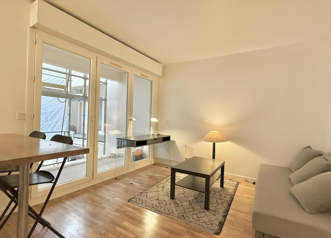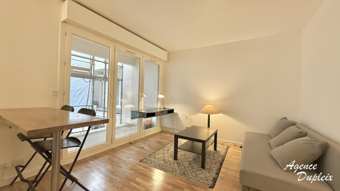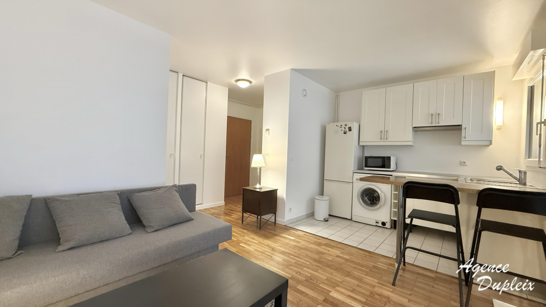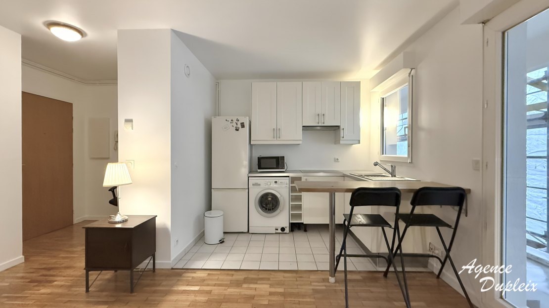 Un studio entièrement repeint au 1er étage sur cour d'un immeuble récent avec ascenseur se composant d'une entrée avec placards, une pièce principale avec un grand balcon donnant sur cour, une cuisine américaine aménagée et équipée d'une machine à laver, d'un frigo congélateur, d'une hotte, de plaques vitro-céramique, une salle de douche avec WC. Une cave complète se bien
