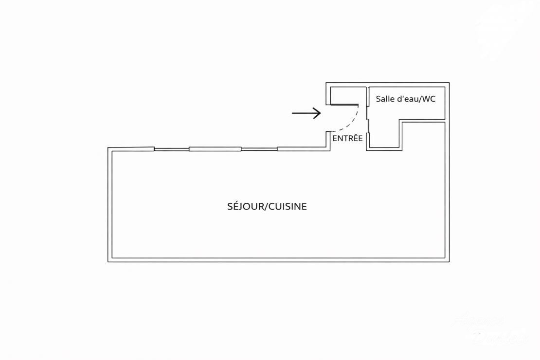 Très bonne distribution, sans perte de place. Superficie : 22 m² Carrez.