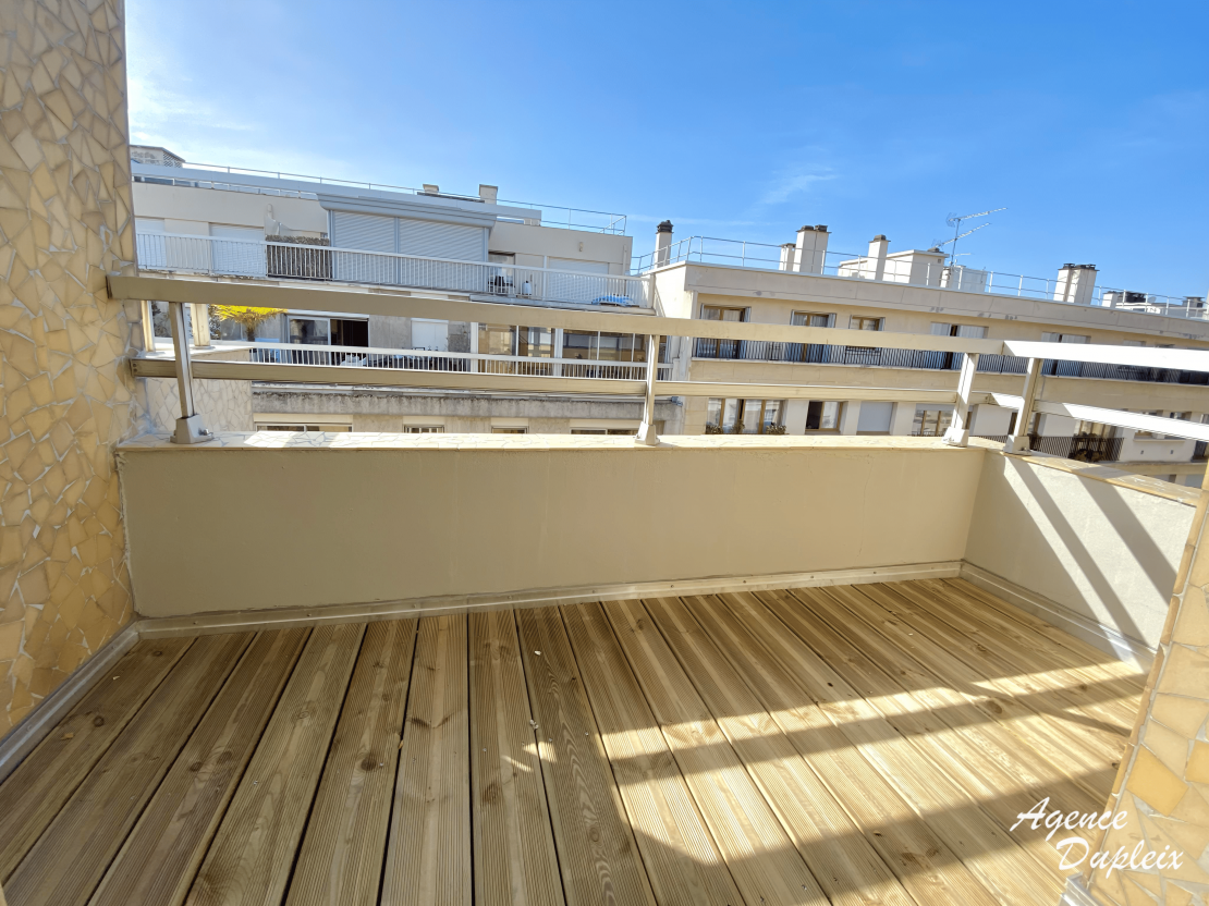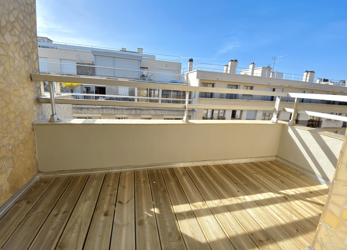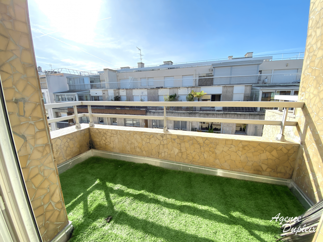 Un appartement de type 2 pièces au 6ème et dernier étage avec ascenceur comprenant une entrée avec rangements, un double séjour avec 2 balcons, une cuisine aménagée de placards et équipée de plaques de cuisson, d'une hotte, d'un réfrigérateur- congélateur, d'un lave vaisselle et d'un four, une chambre avec rangements et un balcon, une salle de bains avec WC.