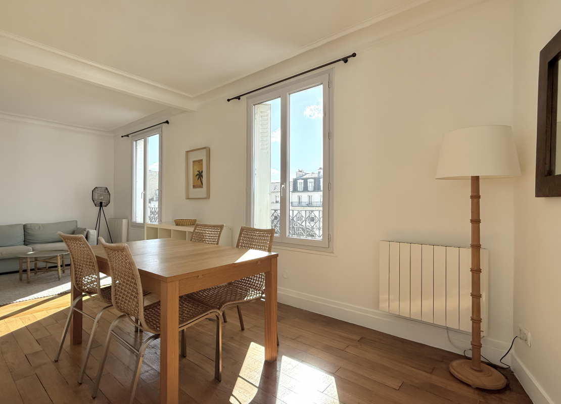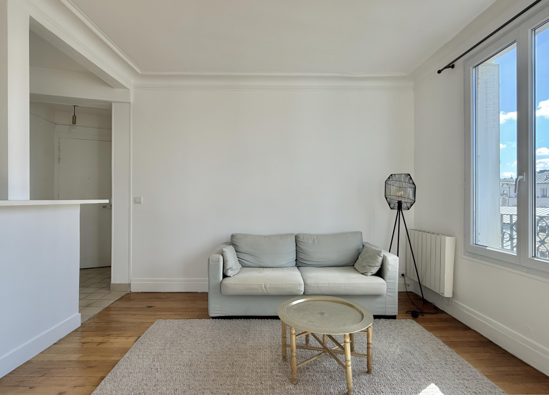 Situé au 5ᵉ étage sans ascenseur d’un bel immeuble en pierre datant de 1900, cet appartement traversant se compose d’une entrée ouvrant sur un double séjour de 22 m², baigné de soleil grâce à son exposition sud-ouest. Il comprend également une cuisine, une chambre ainsi qu’une salle d’eau avec WC.