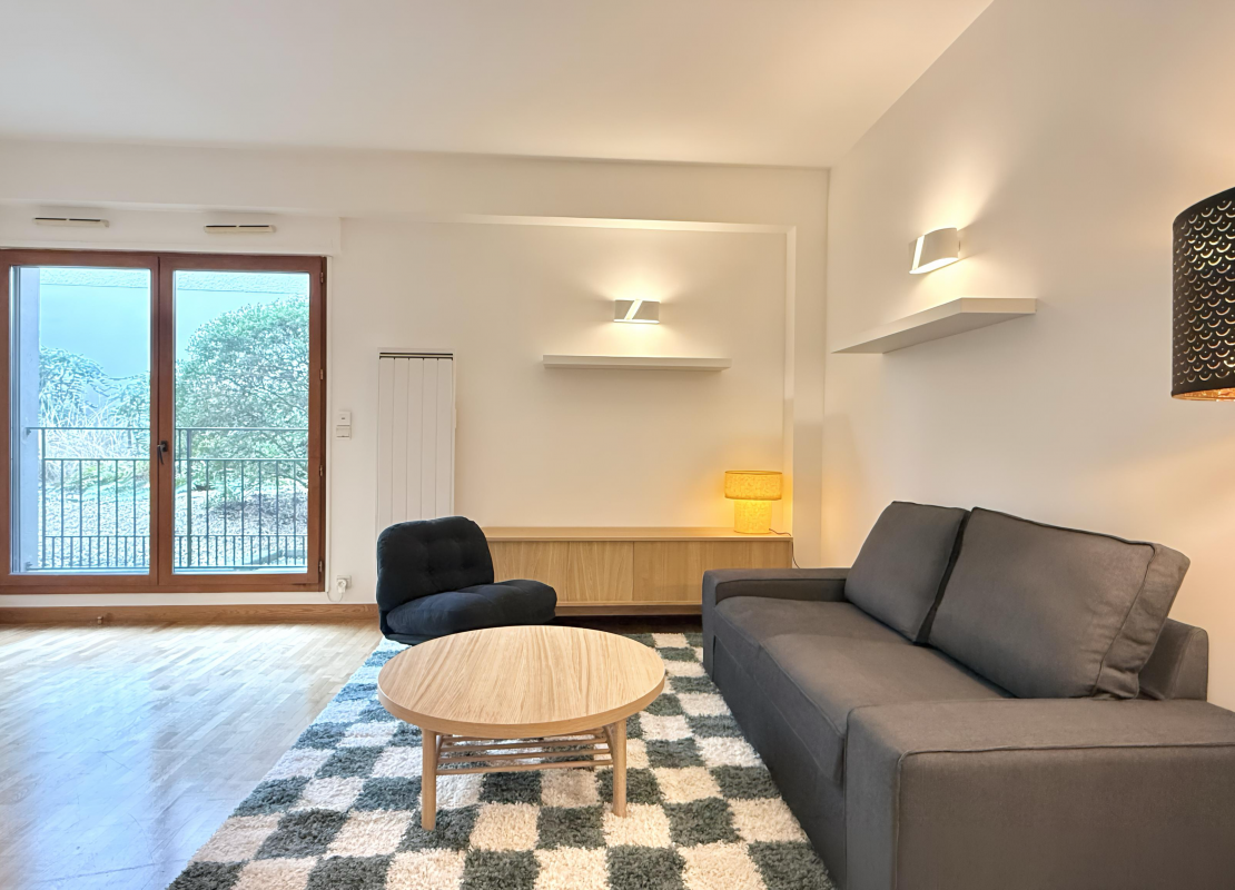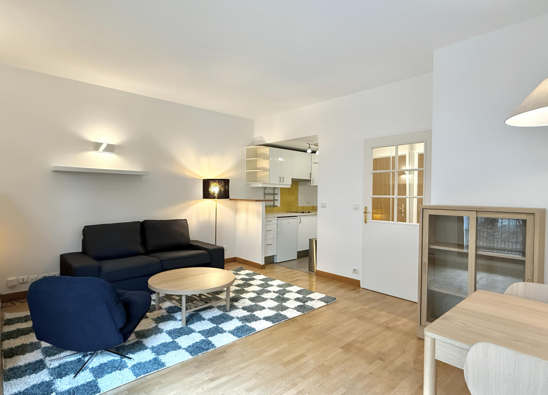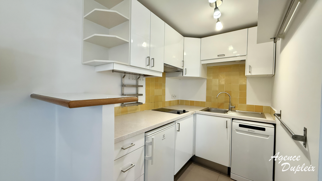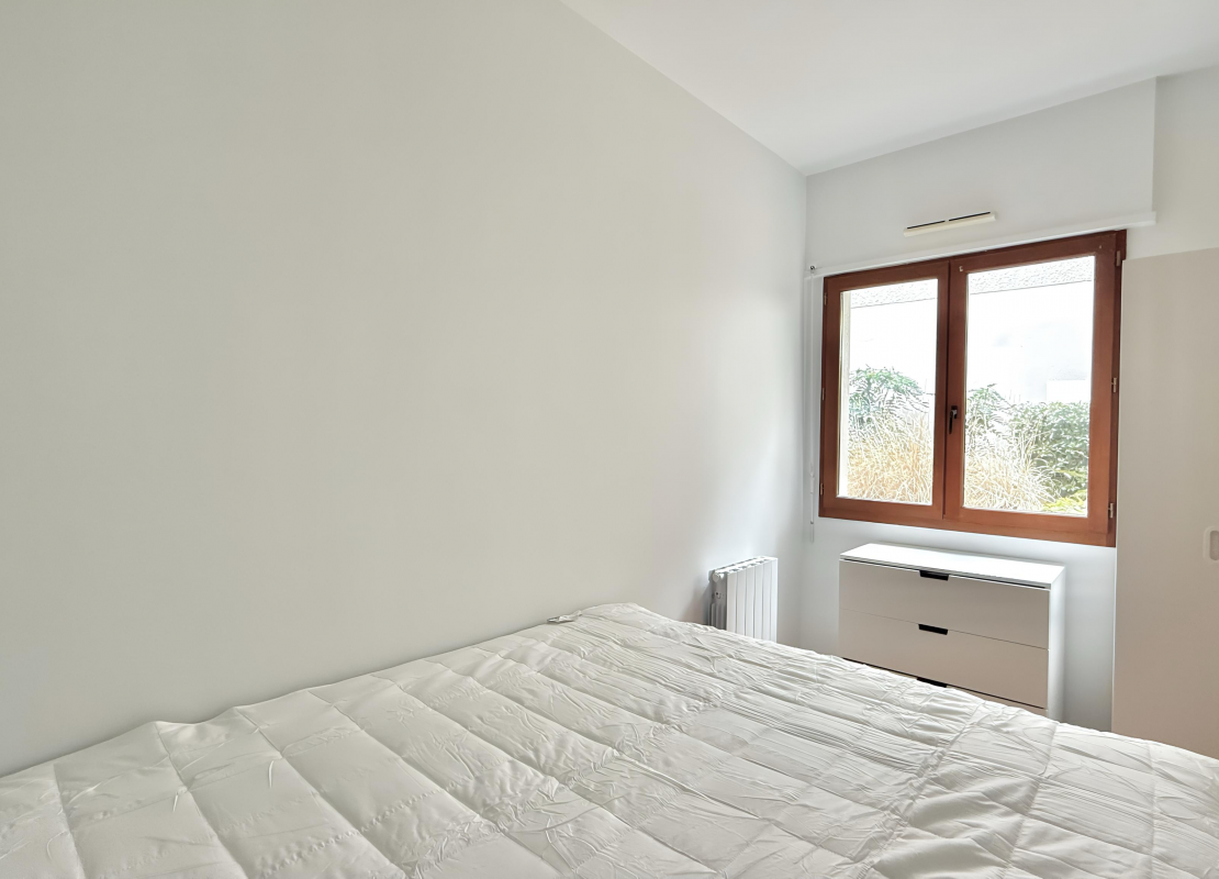 Appartement de 2 pièces entièrement repeint au rez-de-chausée sur jardin dans un immeuble moderne de très bon standing comprenant une entrée avec placard, un séjour avec une cuisine américaine équipée et aménagée de plaques de cuisson, micro ondes, hotte, refrigérateur et lave-vaisselle,une chambre avec rangements, une salle d'eau avec lave linge et WC. Une cave complète ce bien.