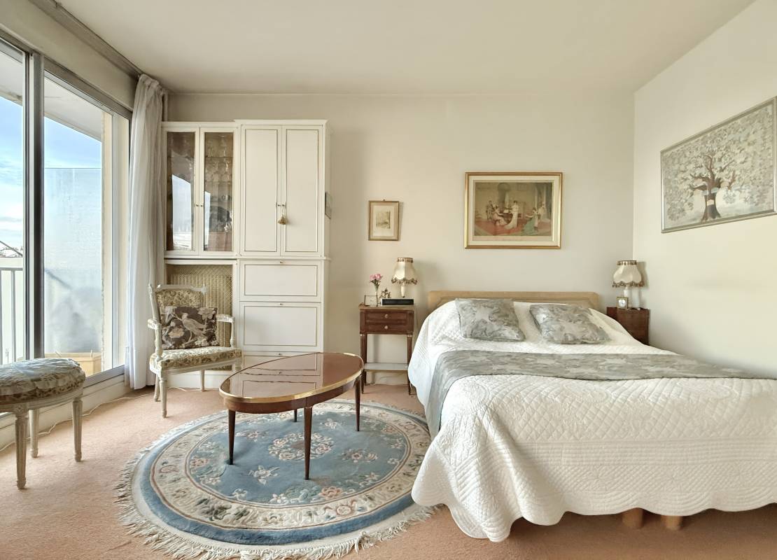 Au 7ème étage d'un immeuble moderne de bon standing, l'appartement profite d'une magnifique vue dégagée sur Paris et la Tour Eiffel. Il se compose d'une petite entrée, une cuisine, un séjour ouvrant un sur balcon de 7,93m3, une chambre, un dégagement avec placards et une salle de bains avec wc. Superficie: 44,38m2