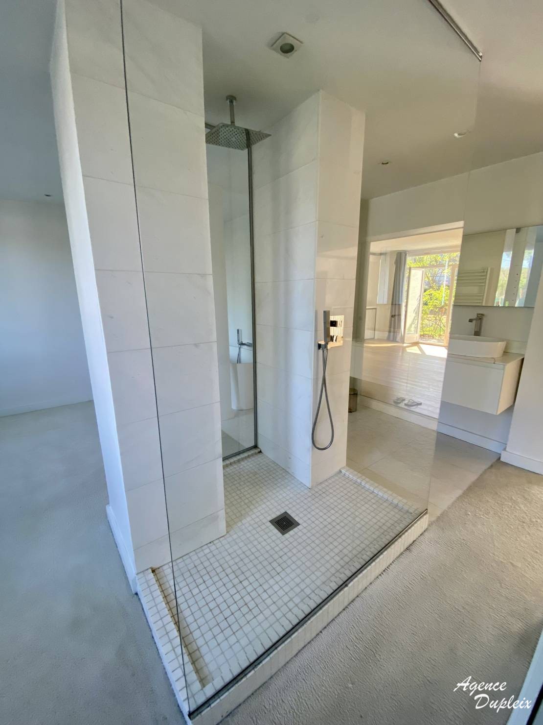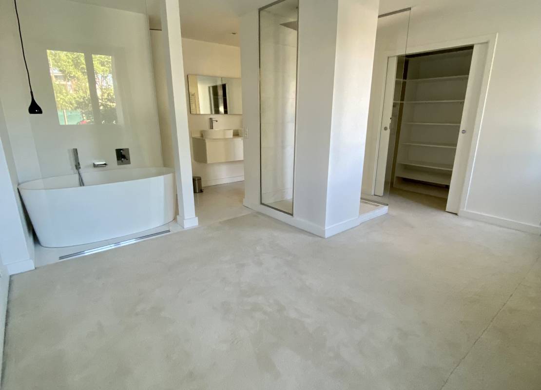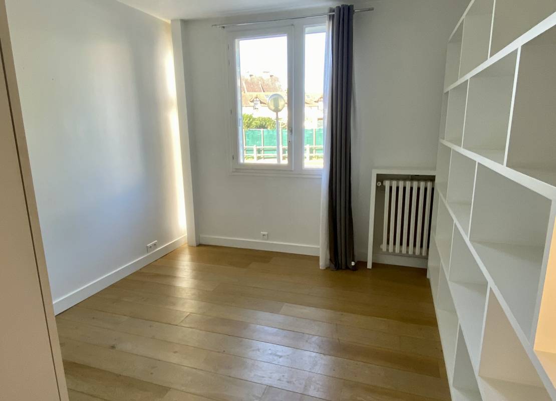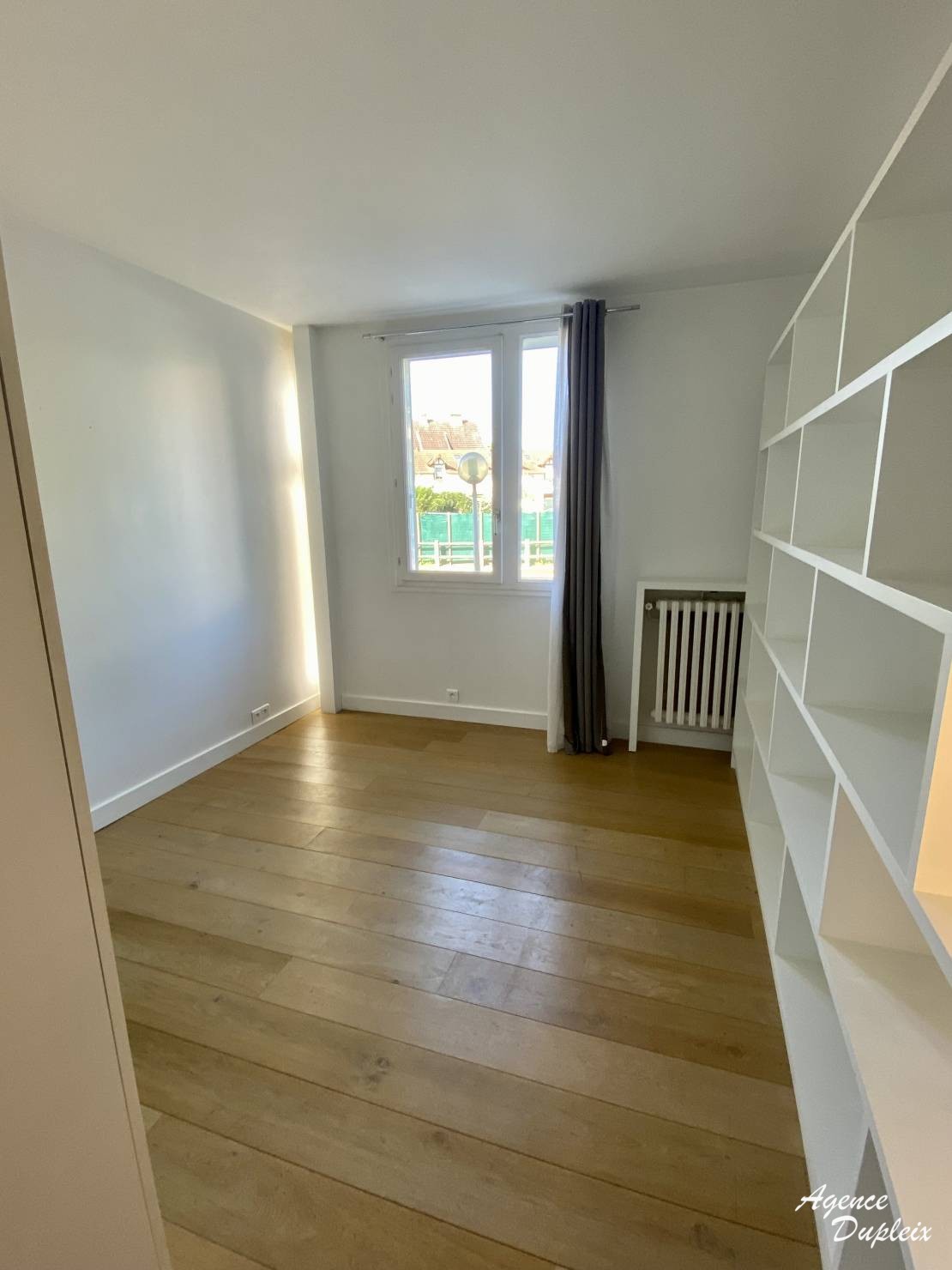 Parc de Maisons Laffitte, en rez de chaussée avec terrasse, un superbe appartement de type 6 pièces se composant d'une entrée, une cuisine ouverte aménagée et équipée de plaques de cuisson, hotte, four, frigo-congélateur, lave vaisselle, une machine à laver et un sèche linge, 2 chambres avec rangements, une salle d'eau à l'italienne avec WC, une salle à manger, un double séjour de 45m2 avec une cheminée à l'étahnol, une magnifique suite parentale avec une douche, une baignoire, un dressing ainsi que des WC.