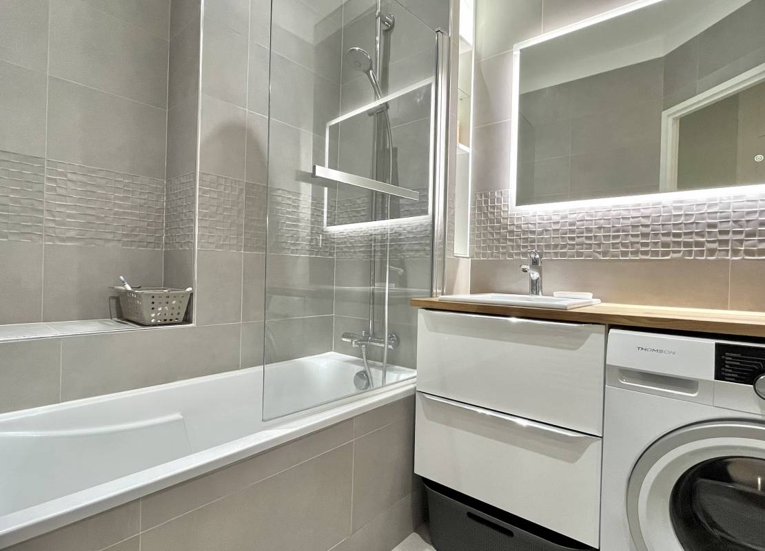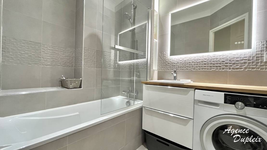 Un appartement de 2 pièces au 3ème étage avec ascenseur comprenant une entrée avec rangements, un séjour avec balcon, un couloir avec rangements, une cuisine séparée aménagée de placards et équipée de plaques de cuisson, d'une hotte, d'un réfrigérateur-congélateur, d'un four et d'un lave vaisselle, une chambre avec rangements, une salle de bains avec un lave linge, des WC séparés.