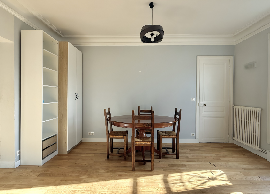 Situé au 4ᵉ étage d’un bel immeuble en pierre de taille, cet appartement traversant se compose d’une entrée, d’un double séjour exposé sud, sans vis-à-vis, d’une cuisine séparée, de deux chambres, dont une côté cour offrant une vue sur la Tour Eiffel, d’une salle d’eau, d’une buanderie ainsi que de WC indépendants.