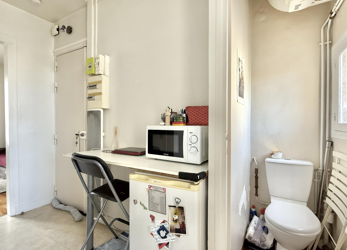 Au 4ème étage par escalier d'un immeuble de 1880, il se compose d'une pièce principale lumineuse, orientée plein sud et donnant sur la rue, d' une cuisine équipée avec une grande fenêtre ouvrant sur une cour dégagée, d'une salle d'eau, ainsi que d'un WC séparés avec une fenêtre.