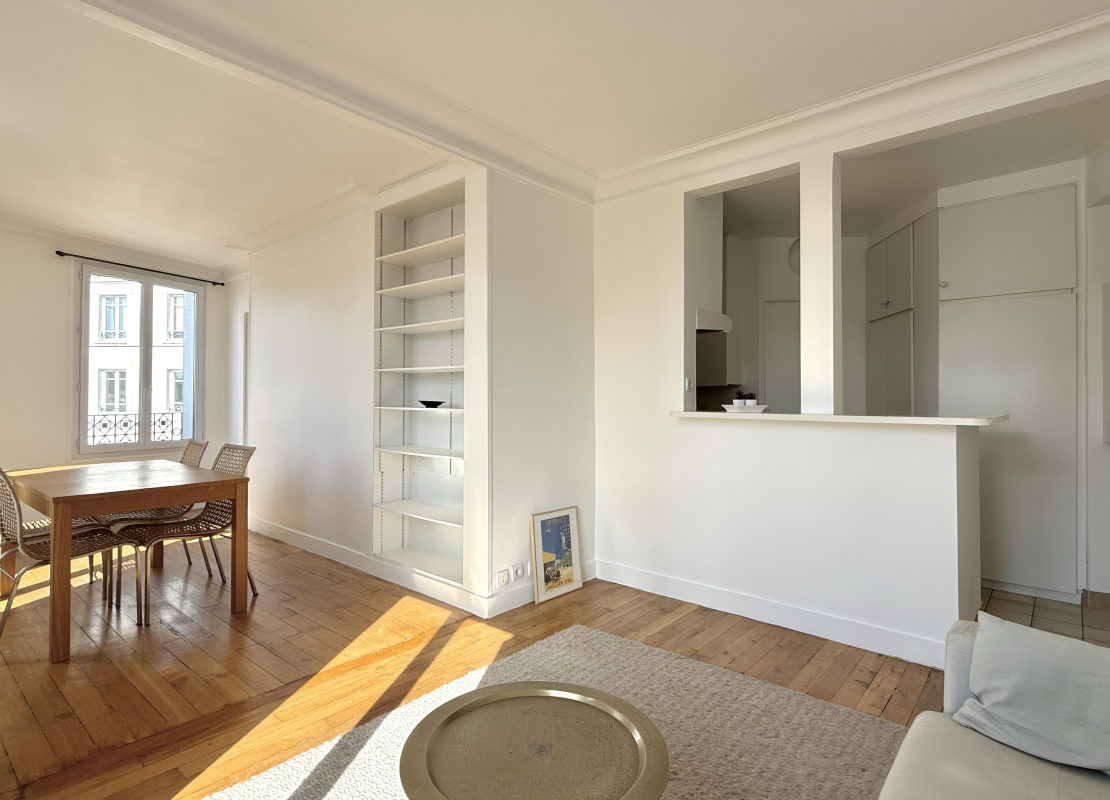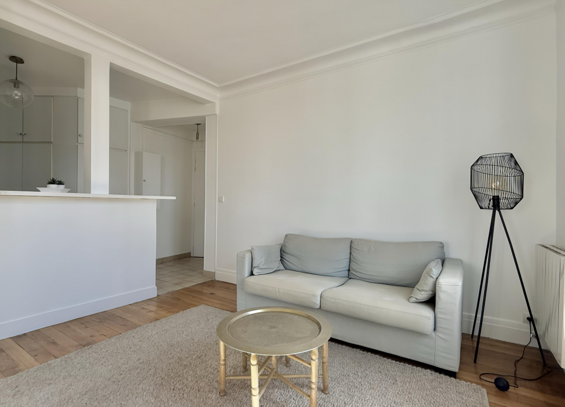 Situé au 5ᵉ étage sans ascenseur d’un bel immeuble en pierre datant de 1900, cet appartement traversant se compose d’une entrée ouvrant sur un double séjour de 22 m², baigné de soleil grâce à son exposition sud-ouest. Il comprend également une cuisine, une chambre ainsi qu’une salle d’eau avec WC.