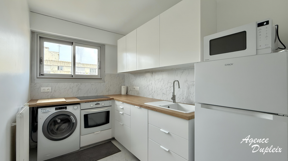 Un appartement entièrement repeint au 6 ème étage avec ascenseur comprenant une entrée, un séjour ouvrant sur un large balcon, une cuisine séparée refaite à neuf, aménagée et équipée d'un four, plaques de cuisson, lave vaisselle, lave linge, réfrigérateur- congélateur et micro ondes, un dégagement avec placards, une chambre donnant également accès au balcon, une salle de bains et des WC séparés. Une cave complète ce bien.