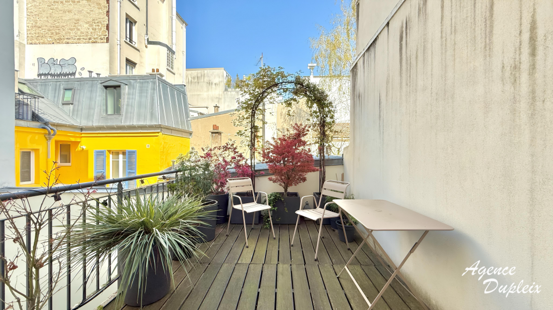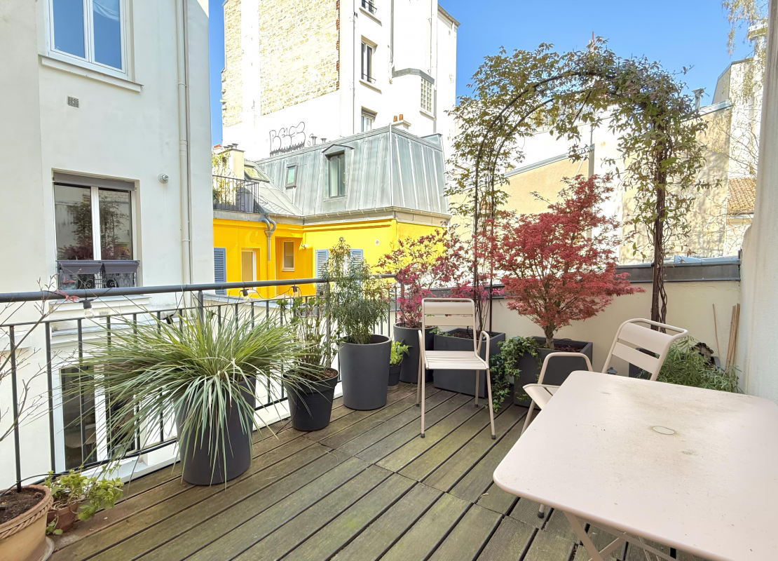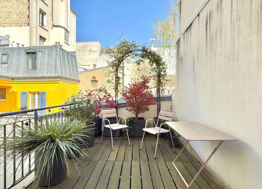 De plus, une terrasse de 11 m², au calme sur cour et accessible par l’une des chambres, complète le tout, ce qui en fait un bien rare dans le secteur.